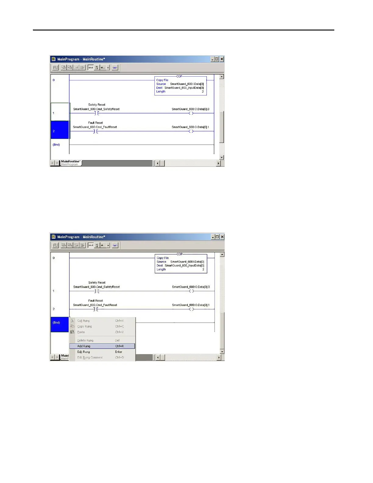 1. Right-click on the rung just after the imported output tag mapping rungs within you project routine and choose