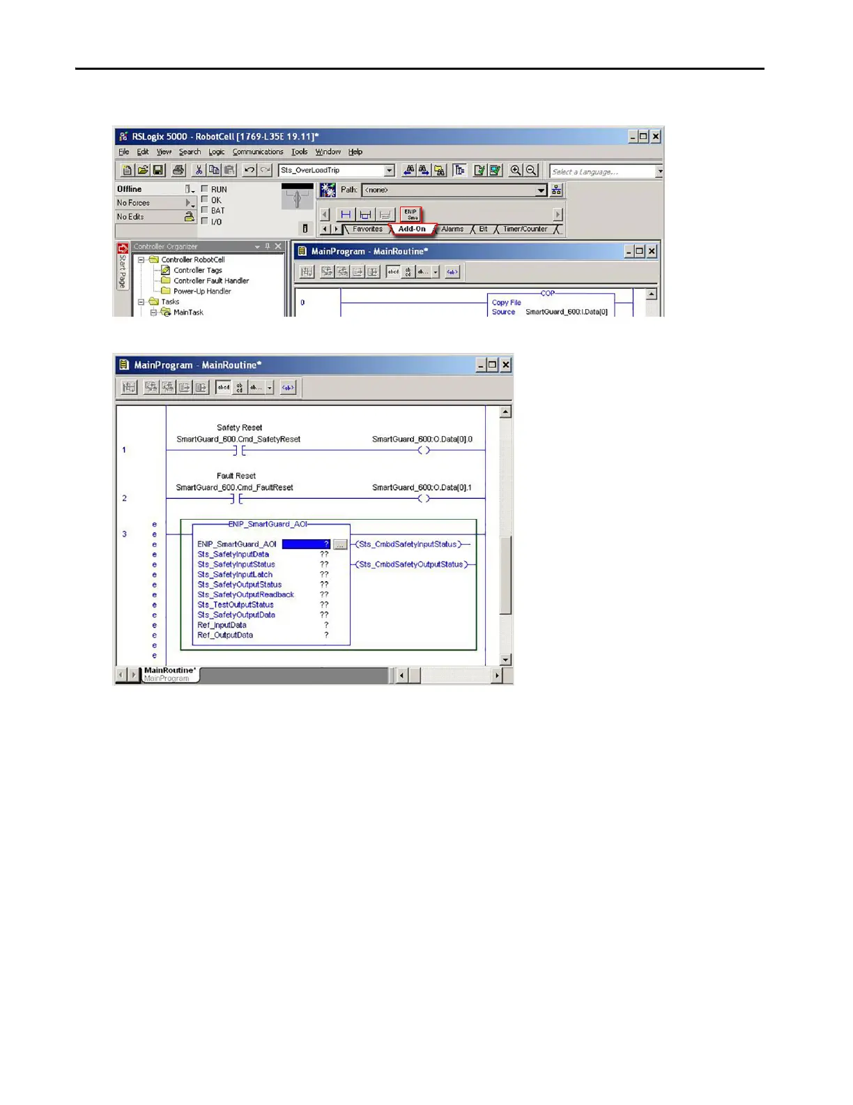 An instance of the ENIP_SmartGuard_AOI instruction appears in the rung.