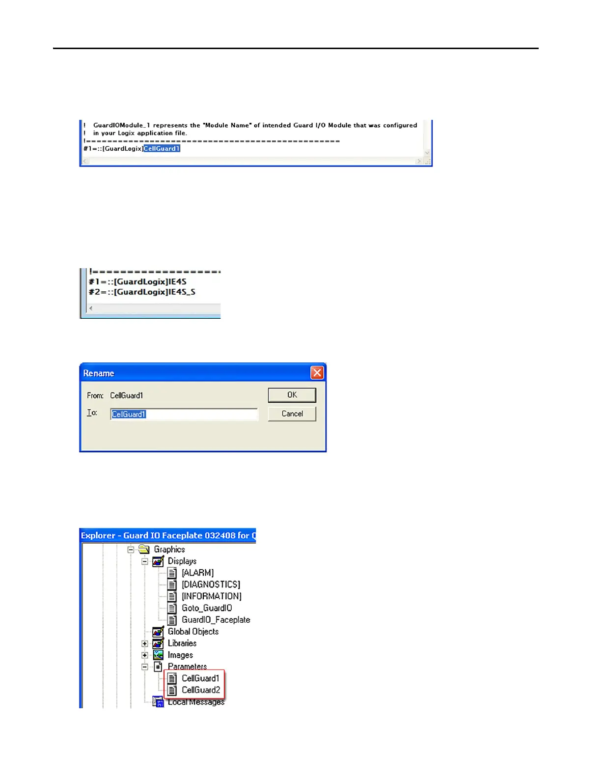 This example shows two parameter files configured for two Guard I/O modules named CellGuard1 and