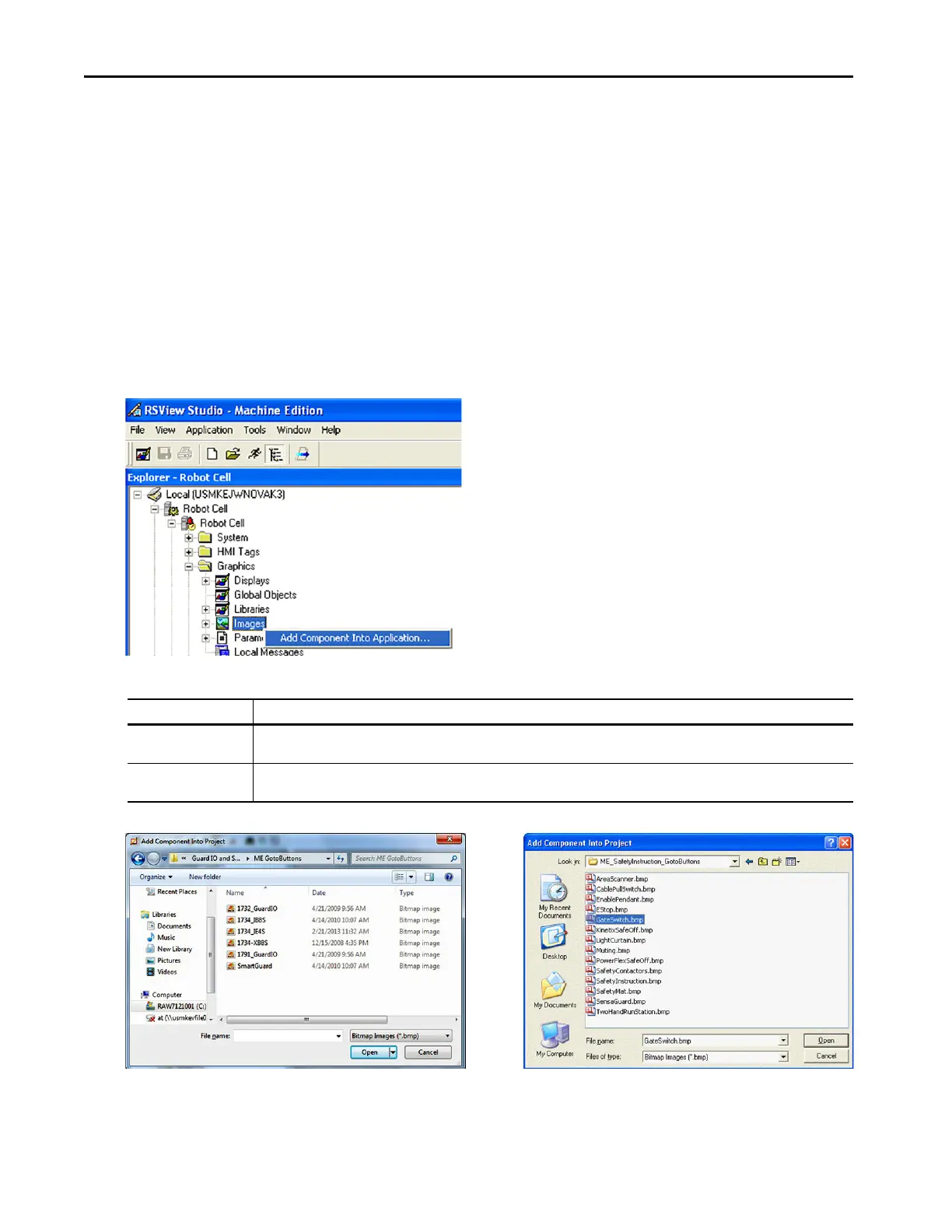 1. Add the safety instruction, Guard I/O, or SmartGuard bitmap images into your FTViewME application by