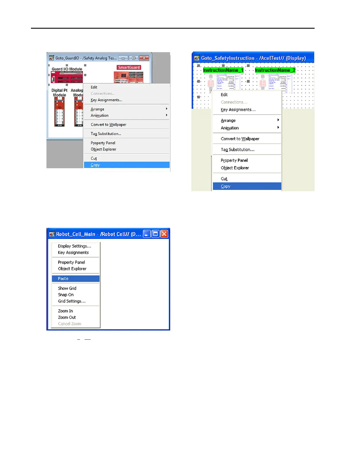 8. Open the Goto_SafetyInstruction or Goto_GuardIO display and copy your desired GotoDisplay button objects.