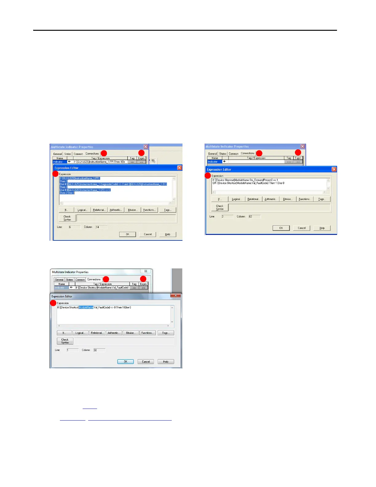 9. To assign the Expression for the blinking MultistateIndicator object Caption, select the Connections tab on the