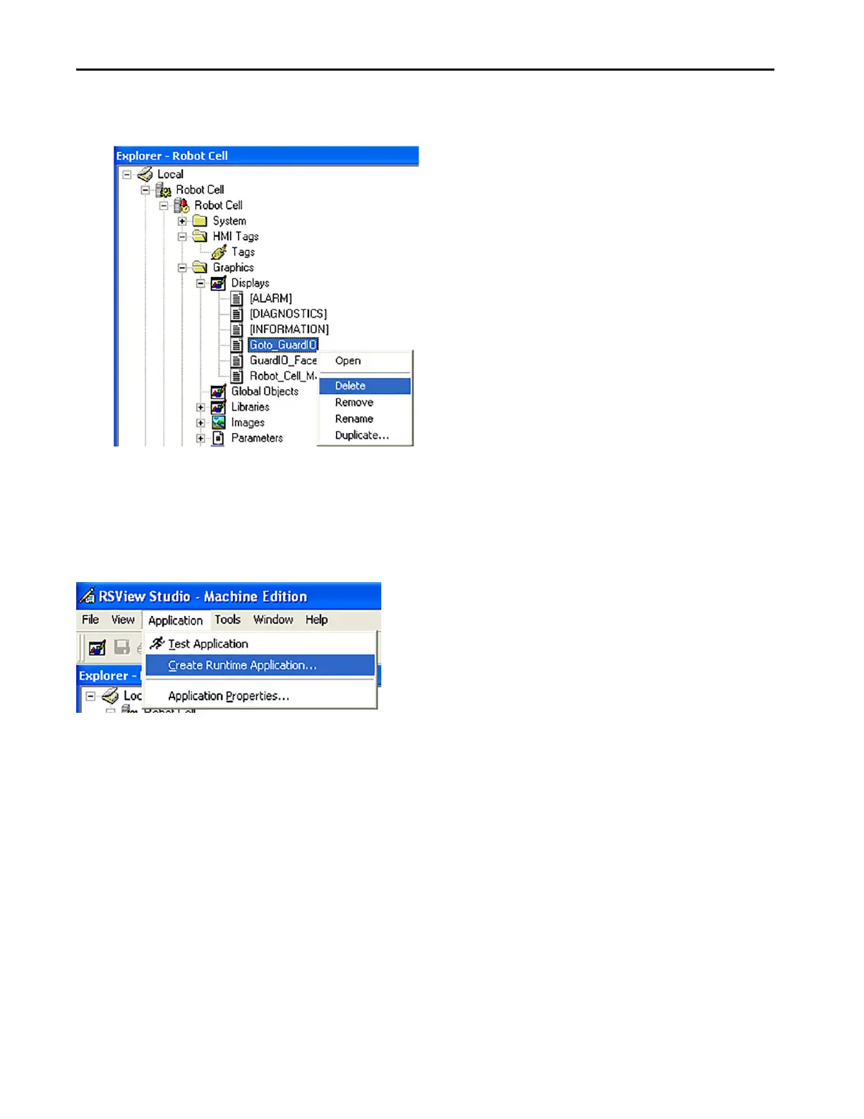 Create a runtime file to test and download your FactoryTalk View ME application by choosing Application>Create