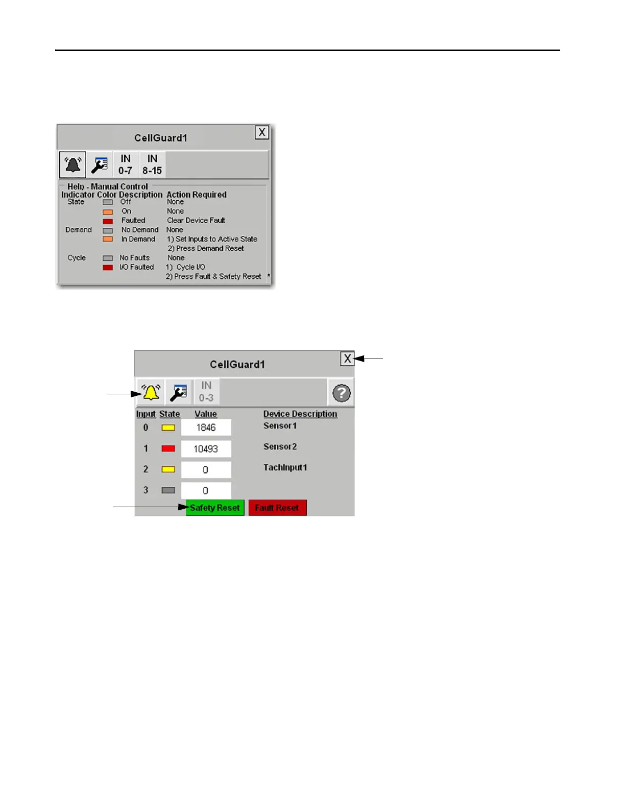 •The Alarm button indicates a Analog Guard I/O module fault condition and activates the Error Content view. A