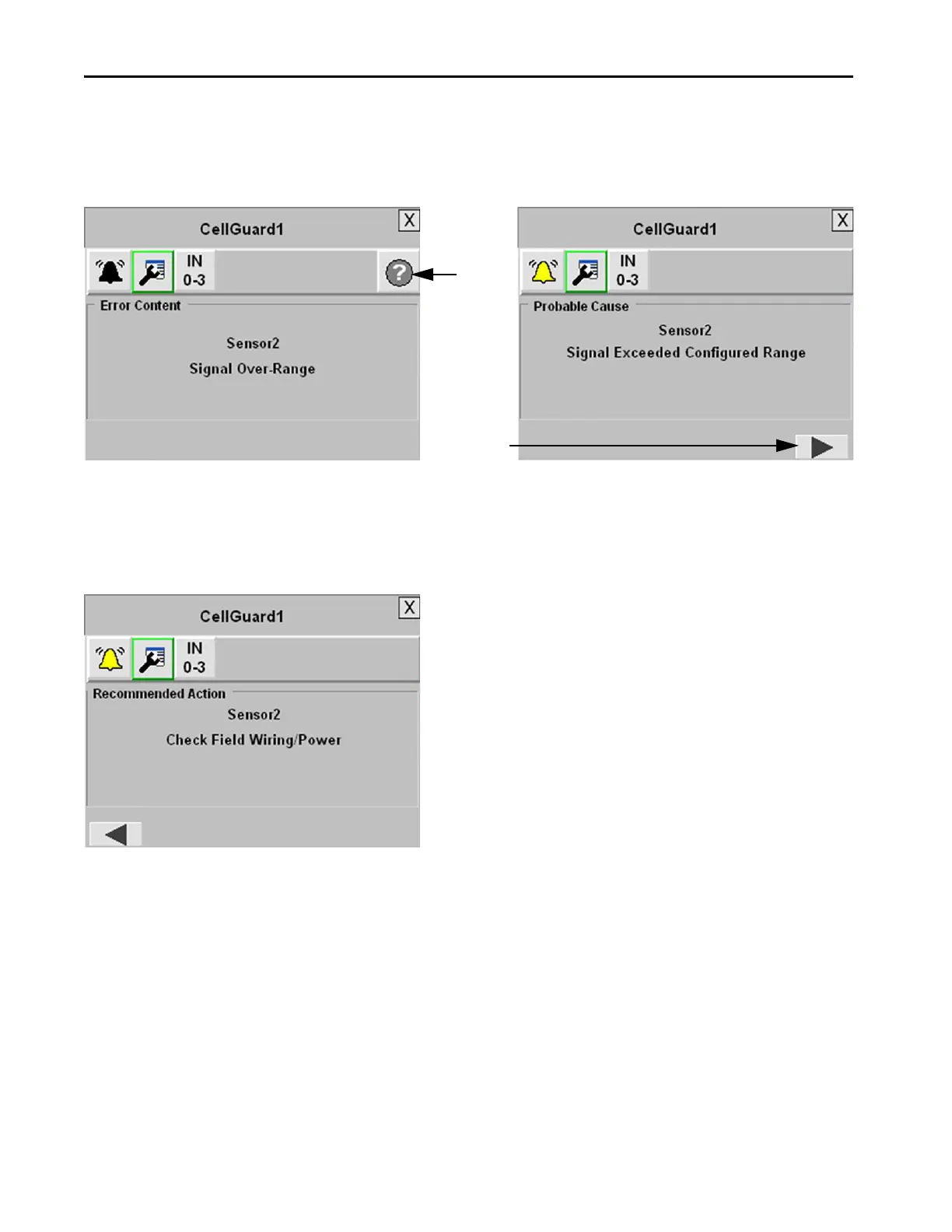 When you press the Alarm button on the toolbar, the Error Content view is displayed, indicating the specific error being