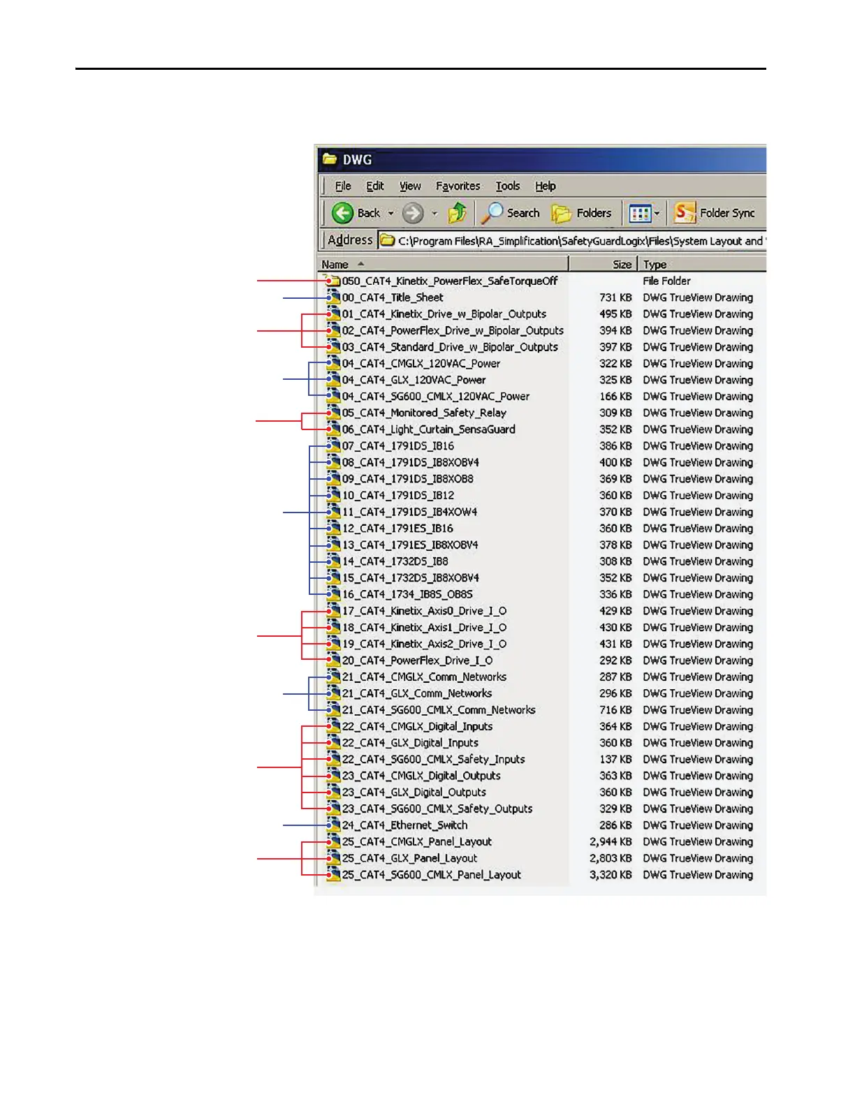 For this example, the CAT4\DWG directory was chosen. A number of drawings for different devices, I/O and