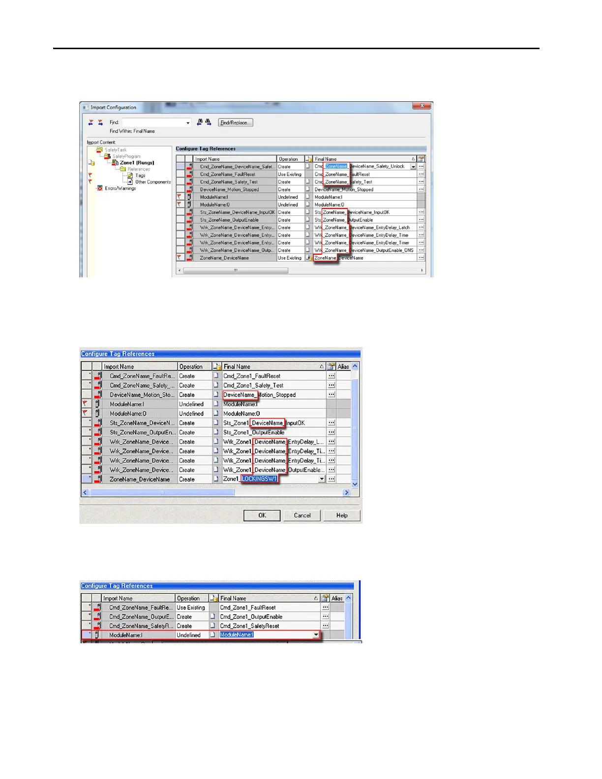 ame from your Safety Module Configuration worksheet into the tag names on the Import