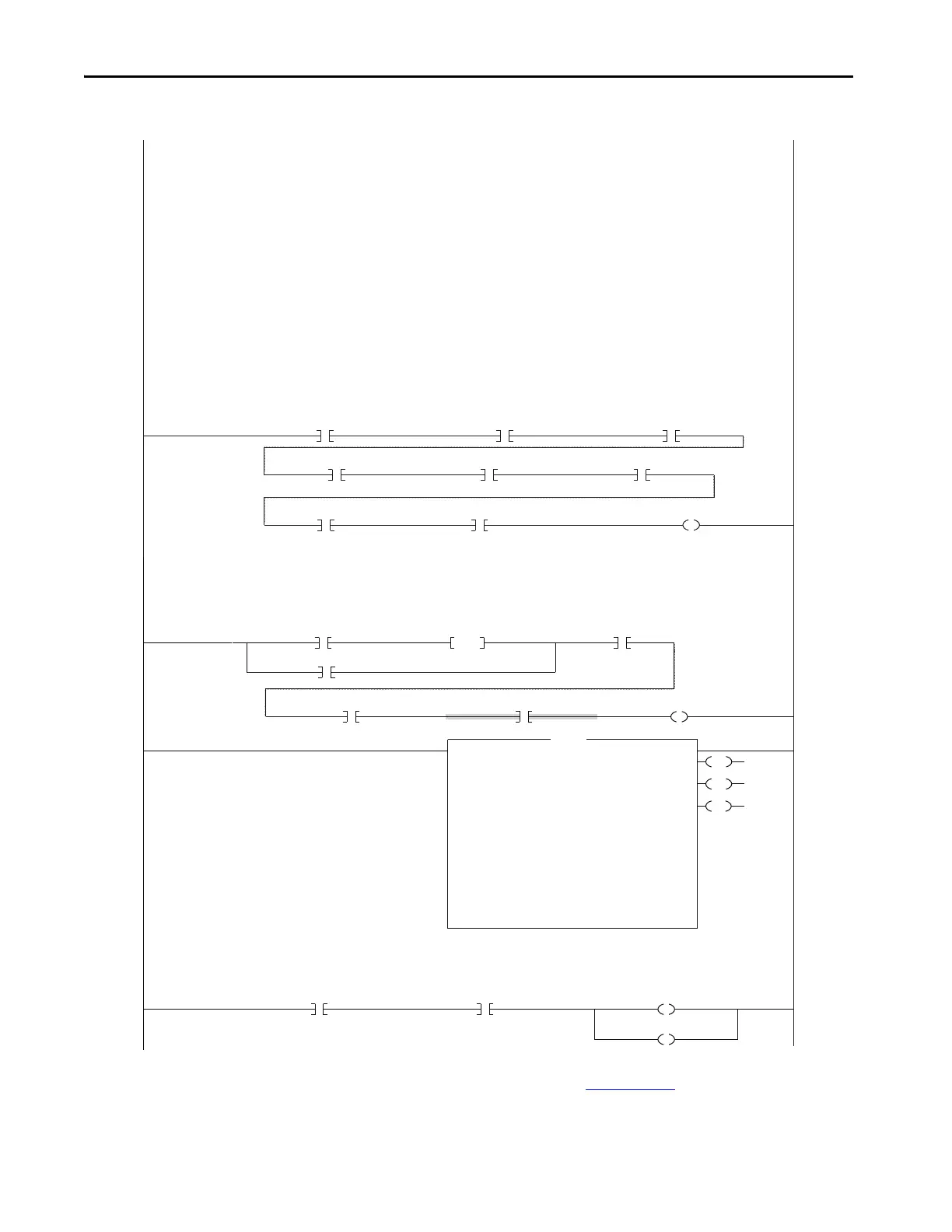 This rung provides the operator action required to reset or enable the safety zone output. The operator action is a LO to HI of 'Safety Reset'. It latches the output enable