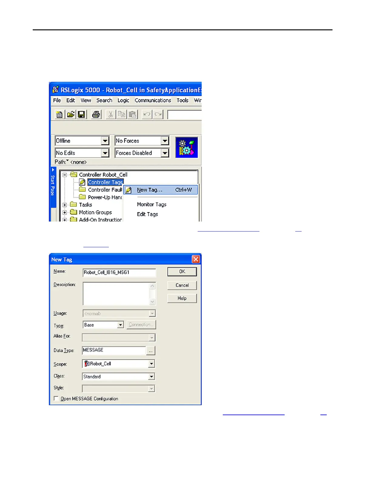 3. In the New Tag dialog box, type the tag name, based on the Guard I/O Module Tags