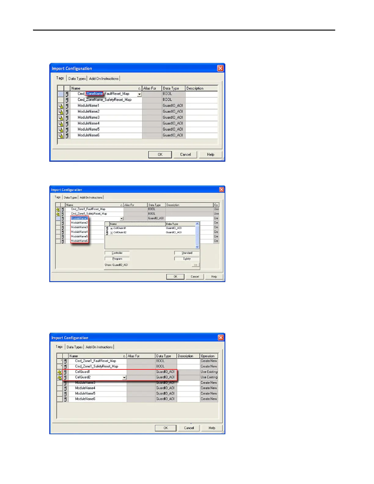 down arrow to browse to your configured GuardIO_AOI tags as listed in your Safety Zone configuration worksheet.