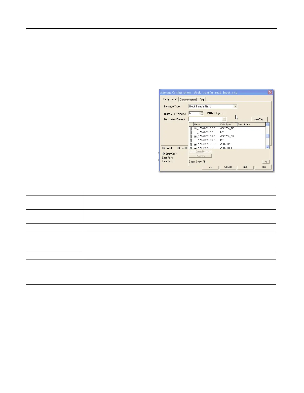 Message Configuration Parameters - Block Transfer Read or Write