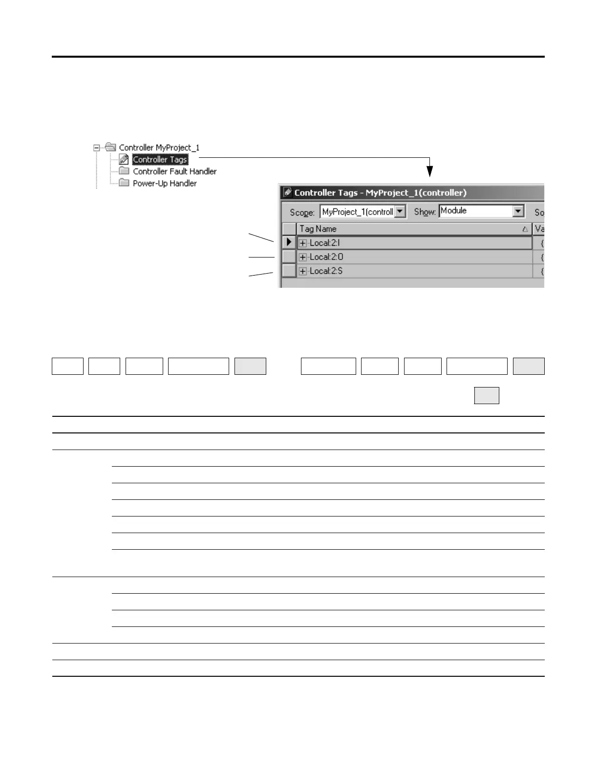 RSLogix 5000 software automatically creates a set of tags for the input, output,