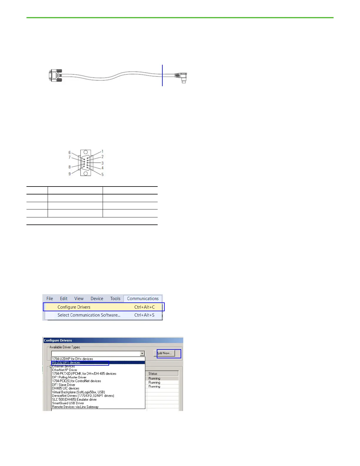 cable so that it has a 9-pin D sub connector on one end and exposed wires on the other end. Here, we use the Allen-Bradley® communication