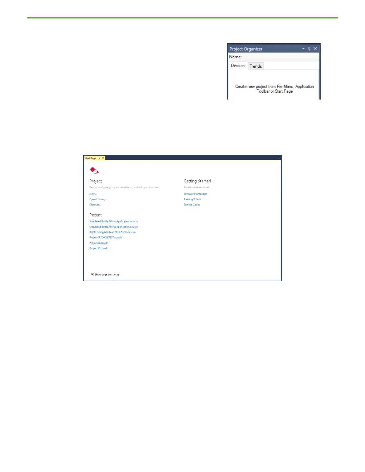The Start Page in the workspace provides a starting point for your workflow. It is categorized into three sections – Project, Recent, and