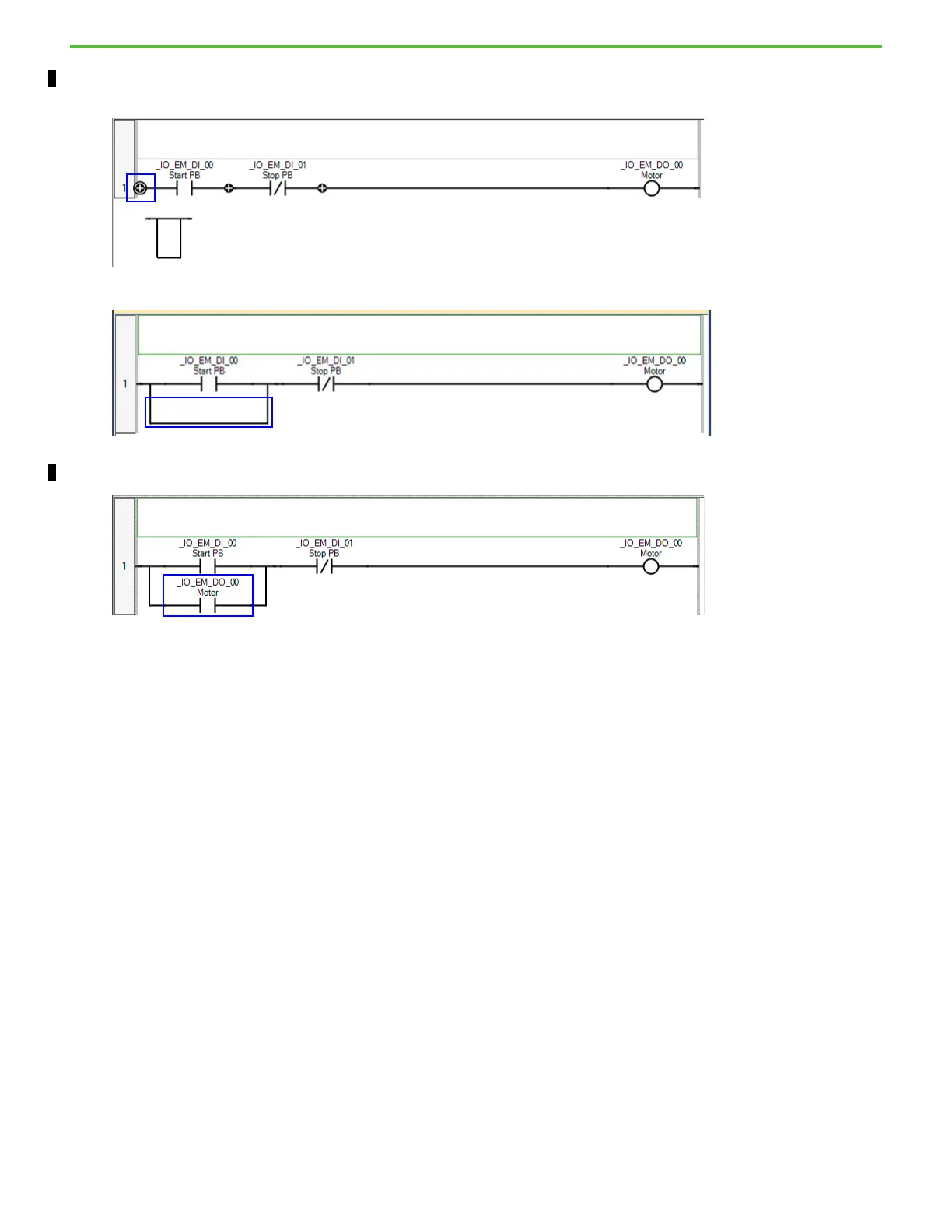 not being pushed), you complete the rung circuit to the output so that the motor turns on. Once the motor is running, you can release the