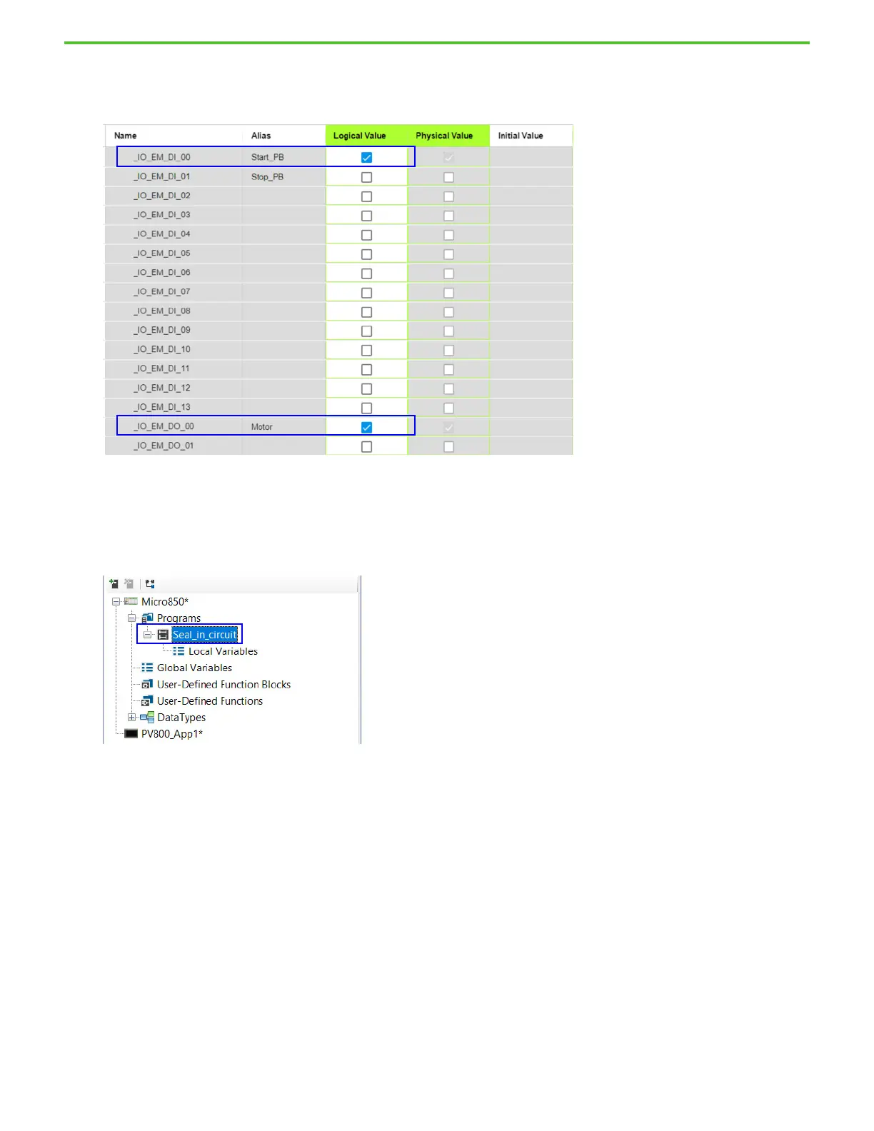 4. Toggle the simulator board switch SW12 ON. Observe the check mark in the Logical Value checkbox for _IO_EM_DO_00 disappears and