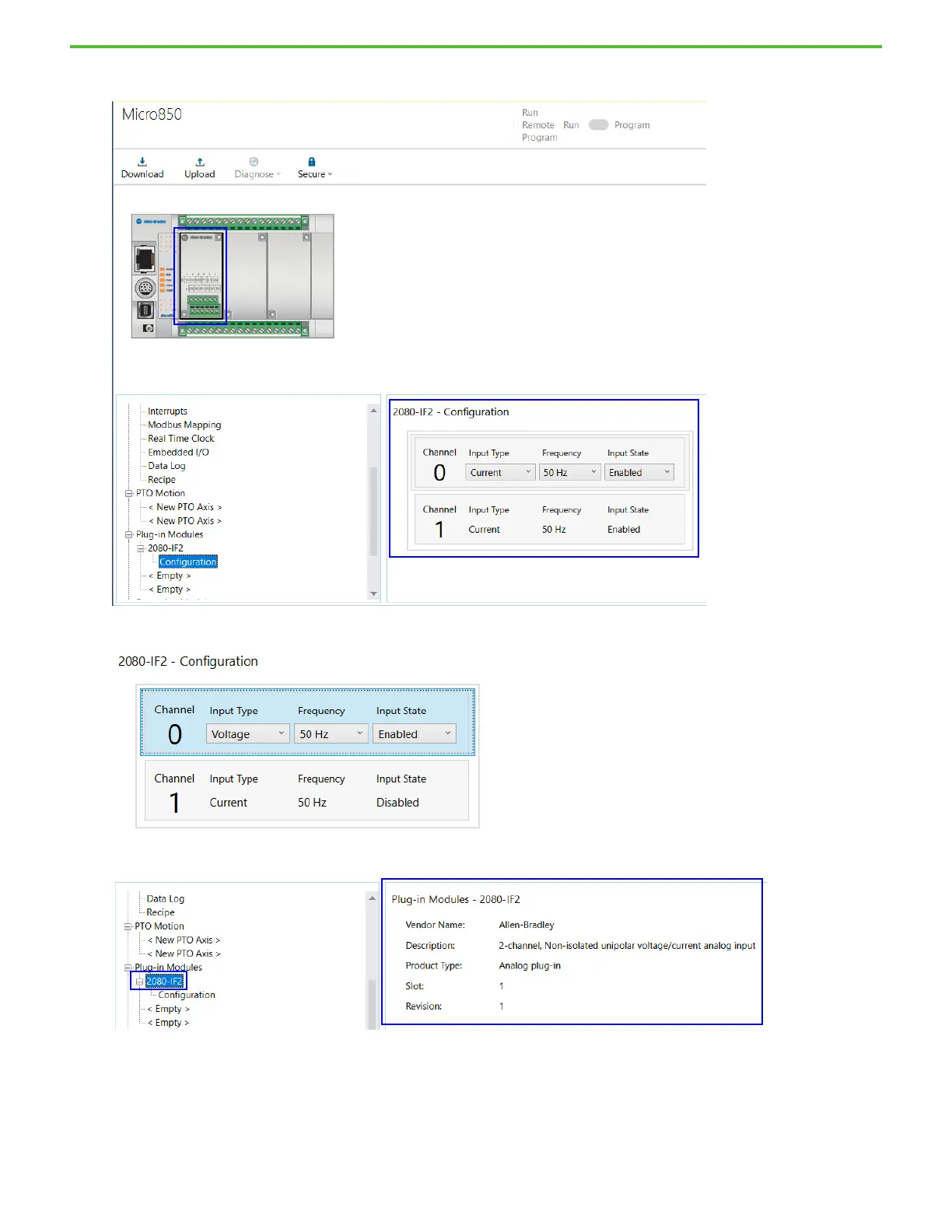 6. The 2080-IF2 module is added to the chassis. The configuration properties should also show up in the window below it.