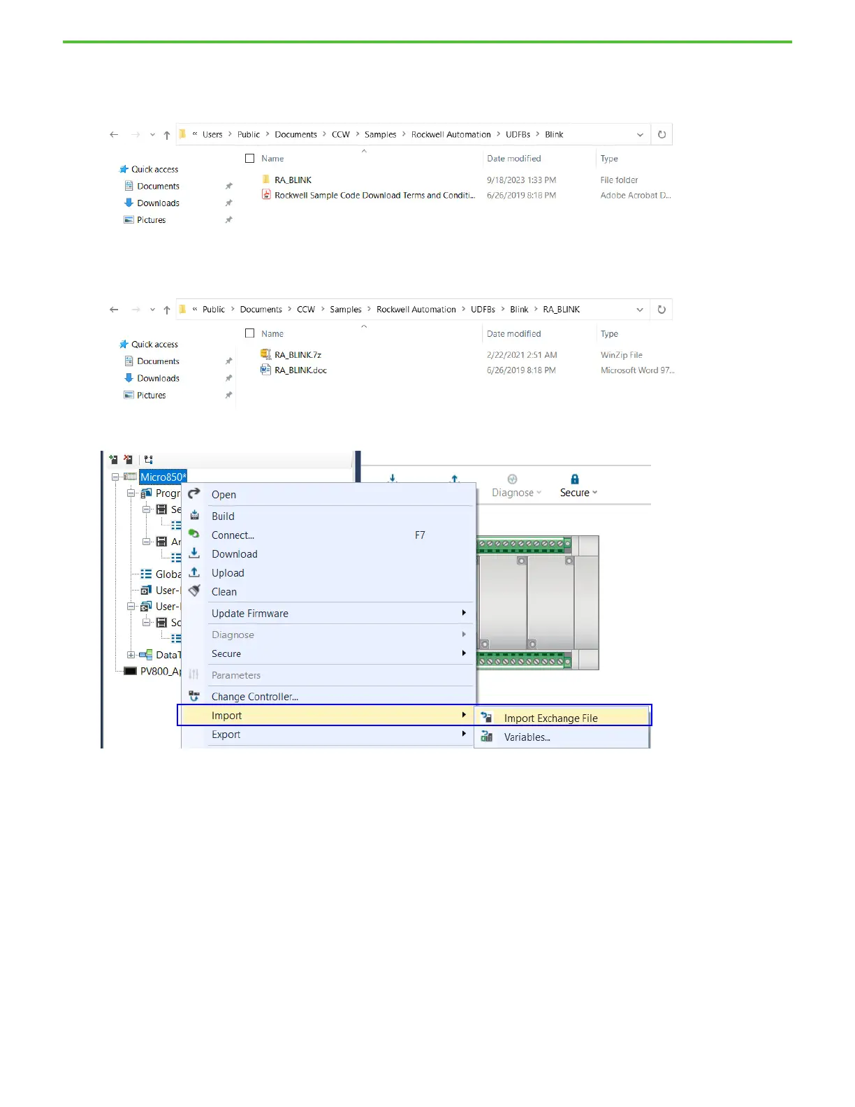 3. Right-click the Micro800 controller and select Import > Import Exchange File.