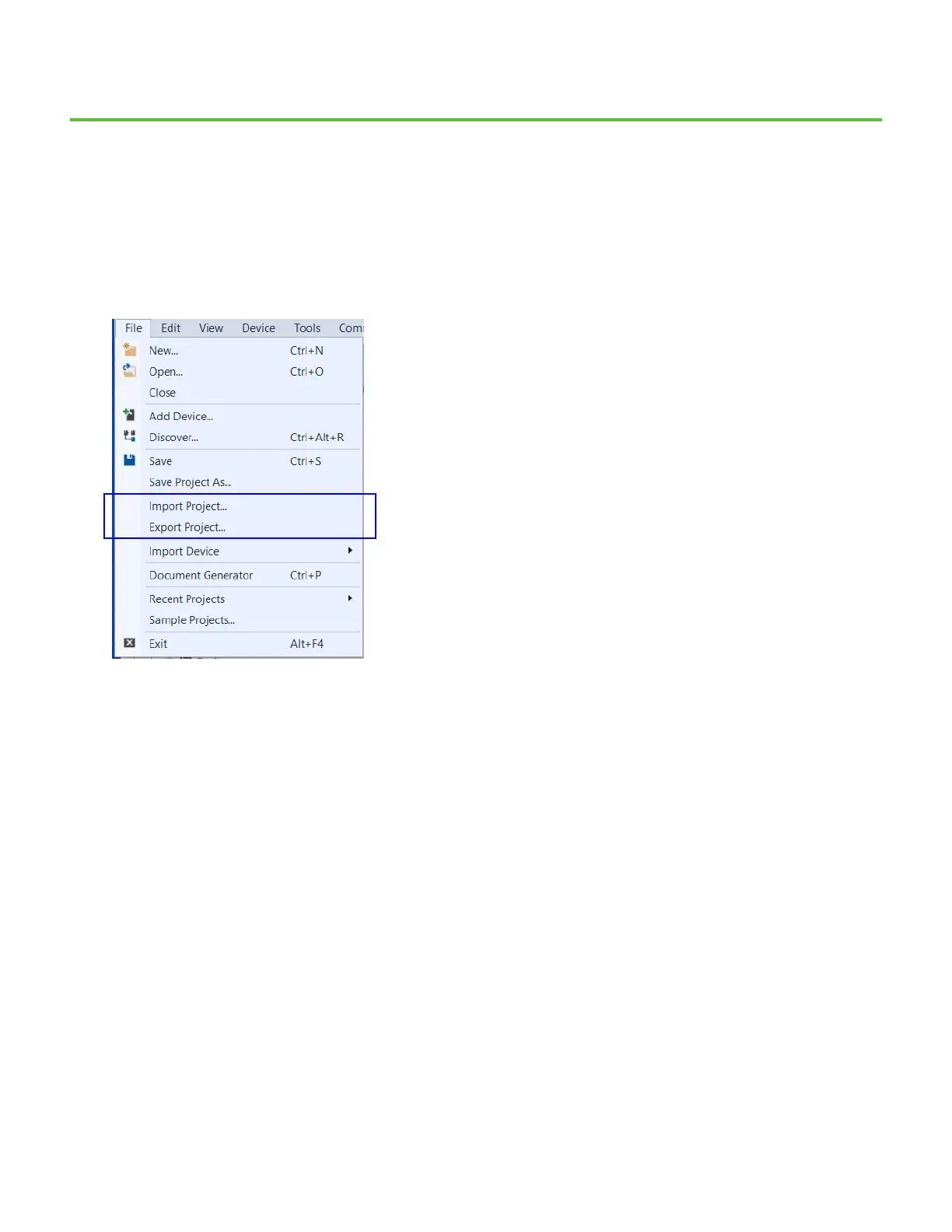To access the Import Project or Export Project window, select File > Import Project or Export Project.