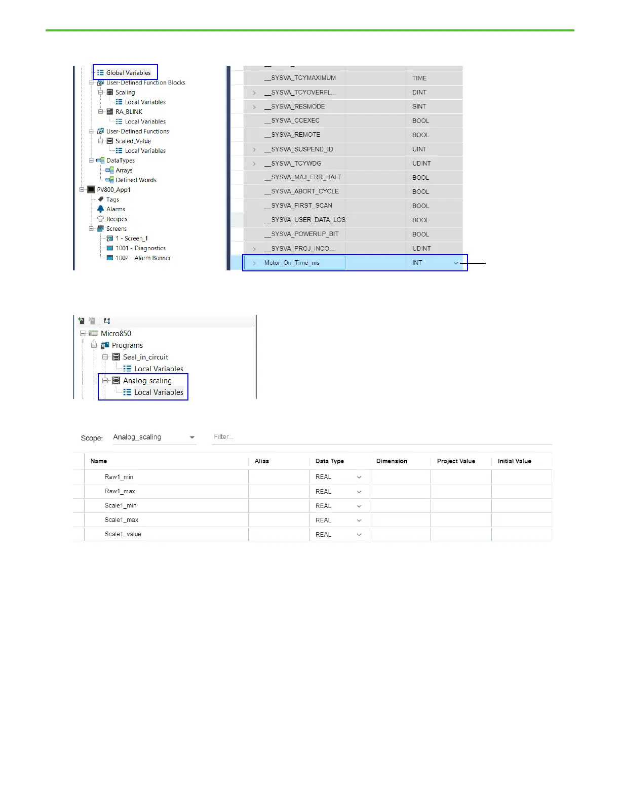 3. Go to the Local Variables for the Analog_scaling program.