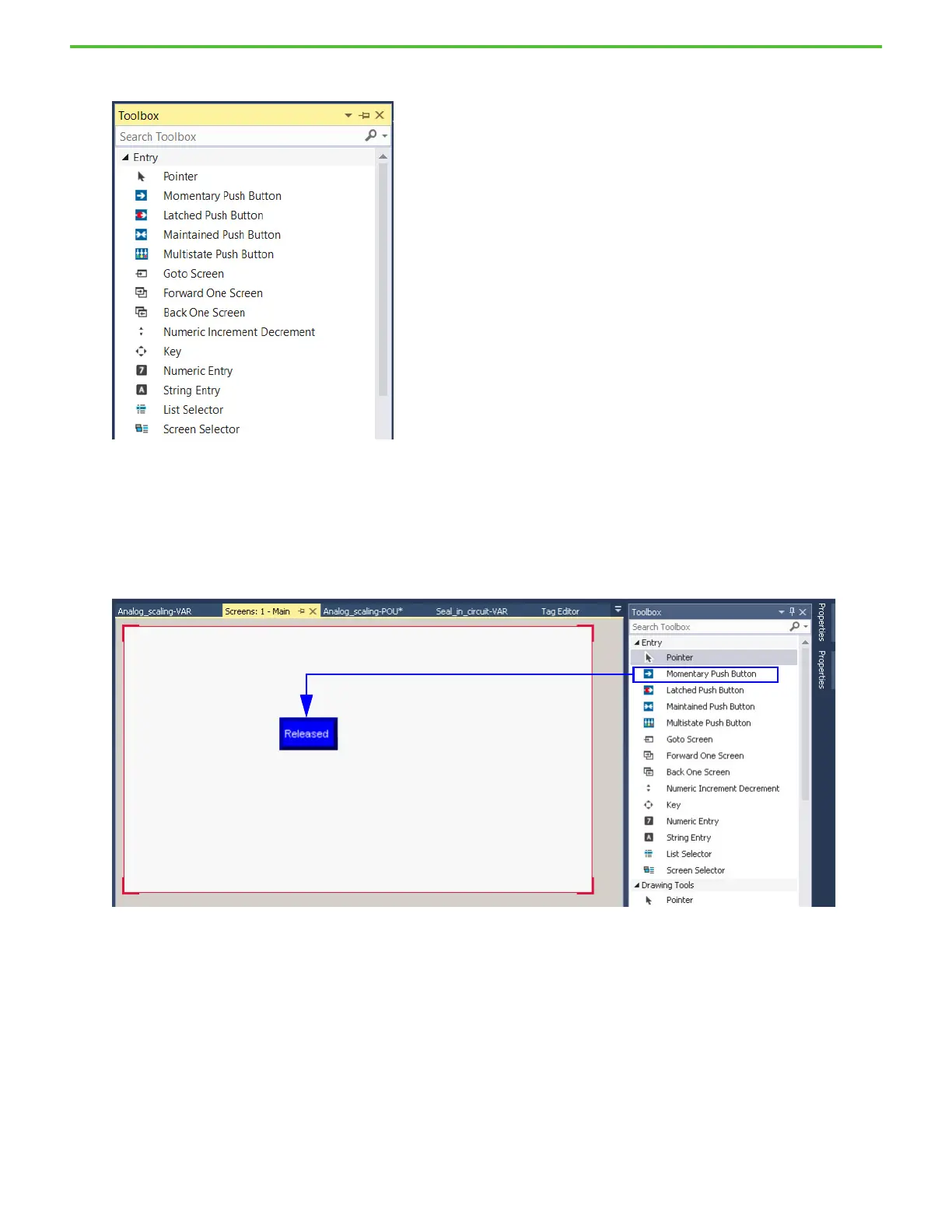 1. Locate the Momentary Push Button in your Toolbox and drag-and-drop it onto your screen.