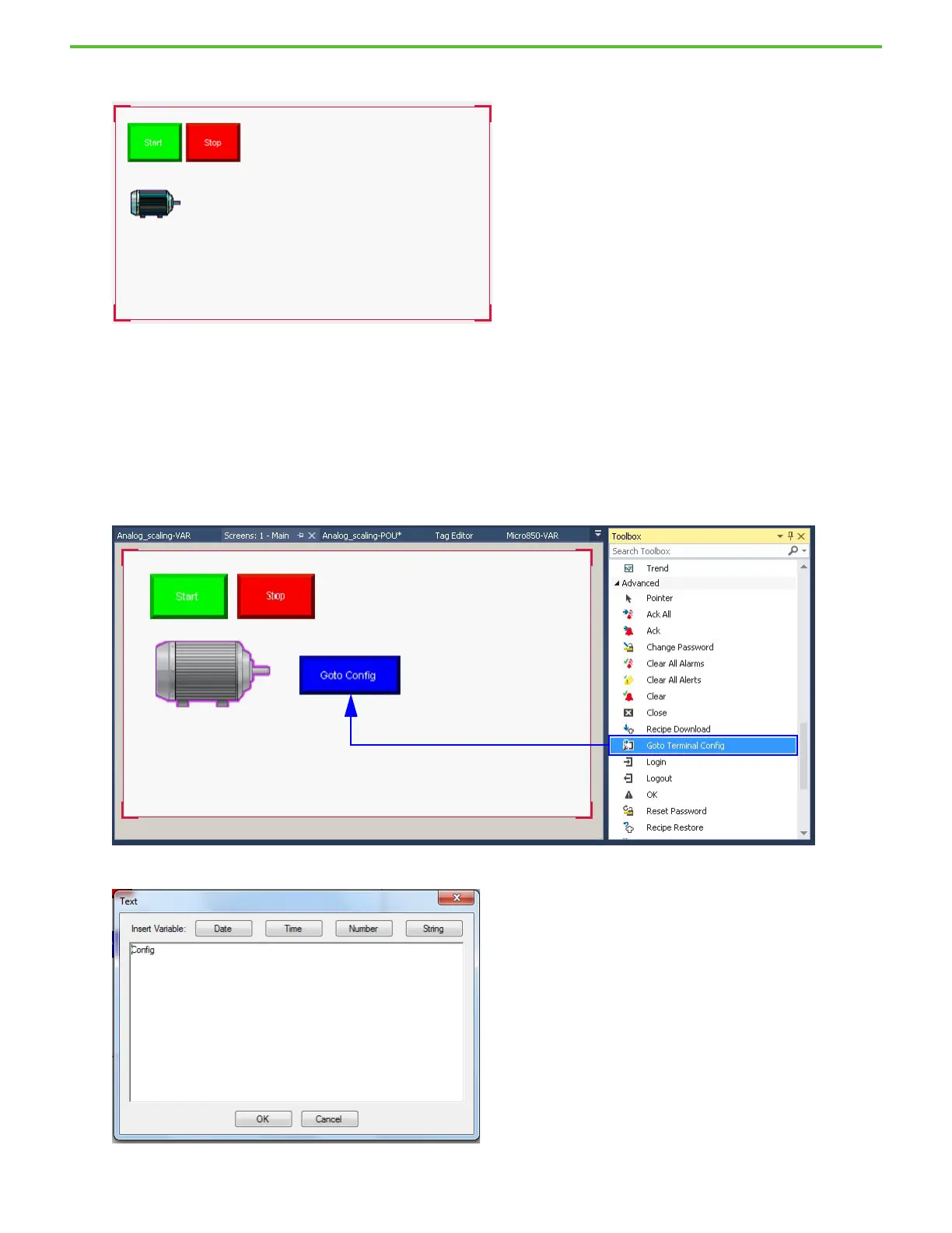 2. Double-click the Goto Config push button and change the Text to “Config”, then select OK.