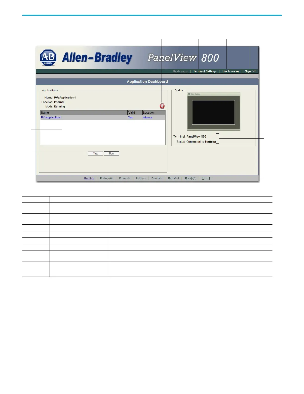 5 Languages Shows the current and available languages for PanelView Explorer.