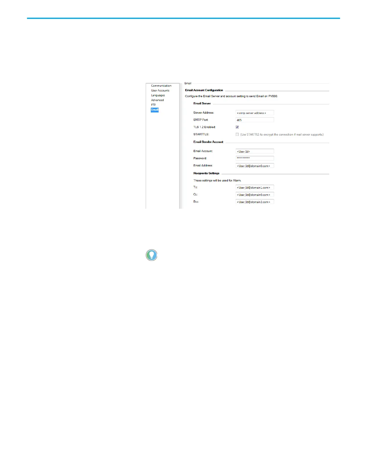 • STARTTLS = Select this checkbox to enable STARTTLS if the email