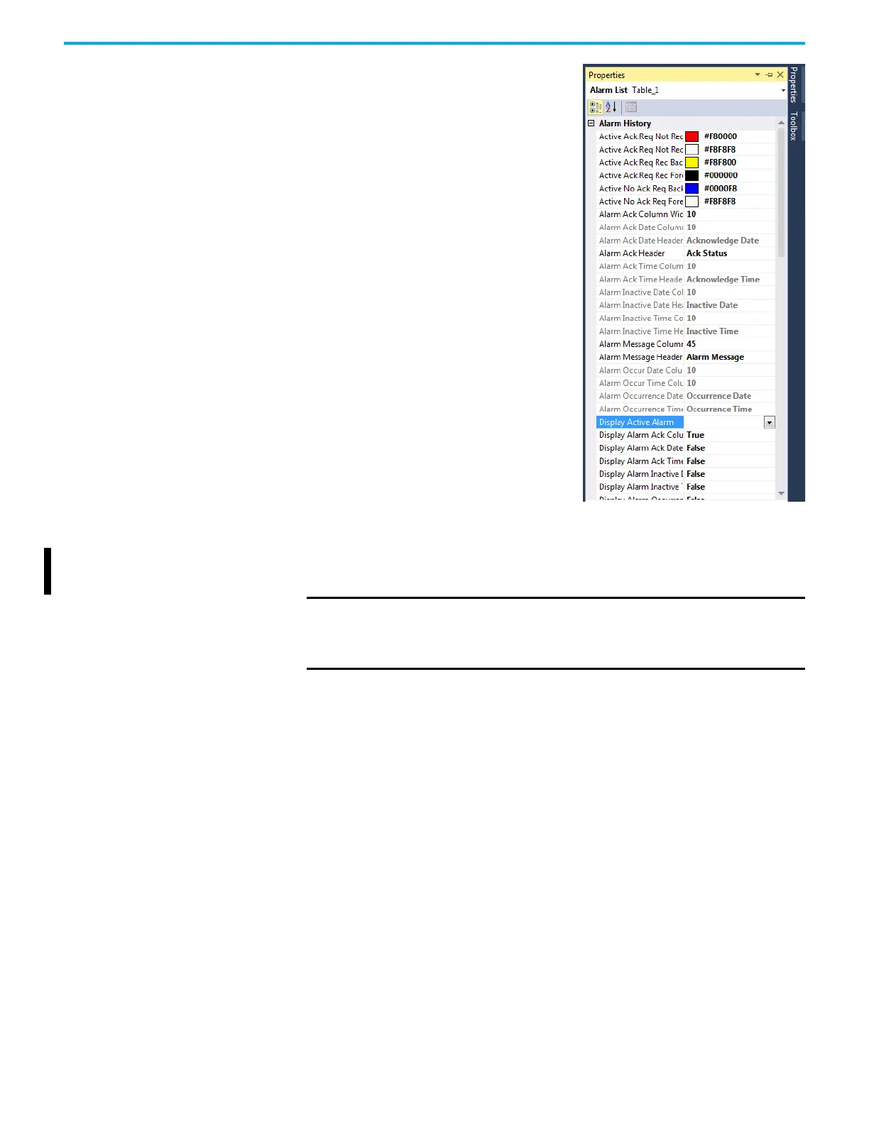 • Display Active Alarm: By default, all