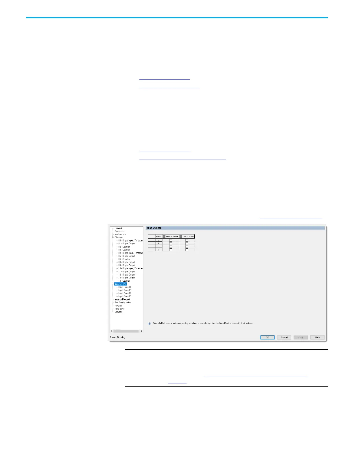 IMPORTANT You cannot configure events on the Input Events view. The parameters