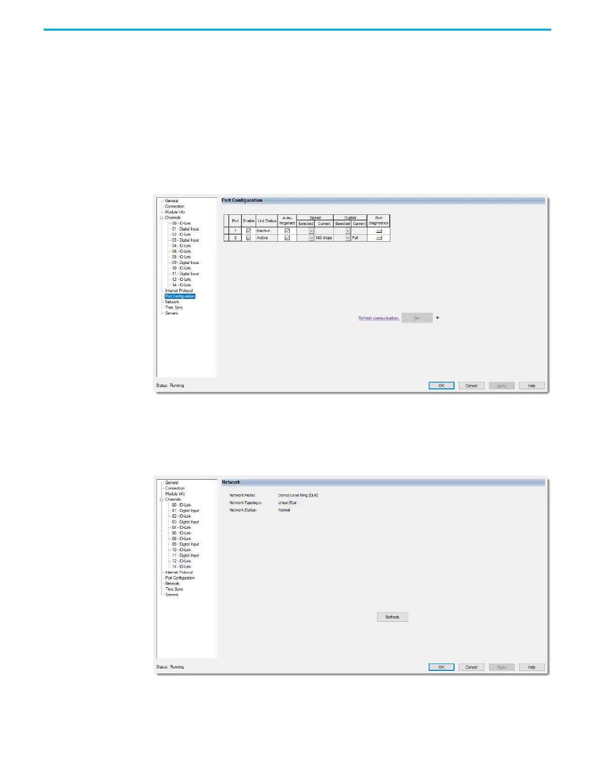 The Network view shows the status information that is related to the Device Level Ring (DLR)