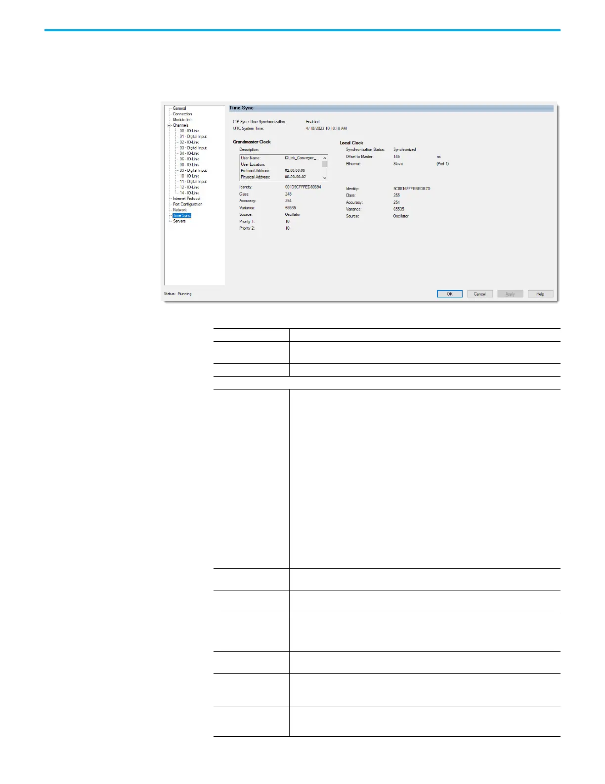 The Time Sync view shows information that is related to CIP Sync Time Synchronization. The