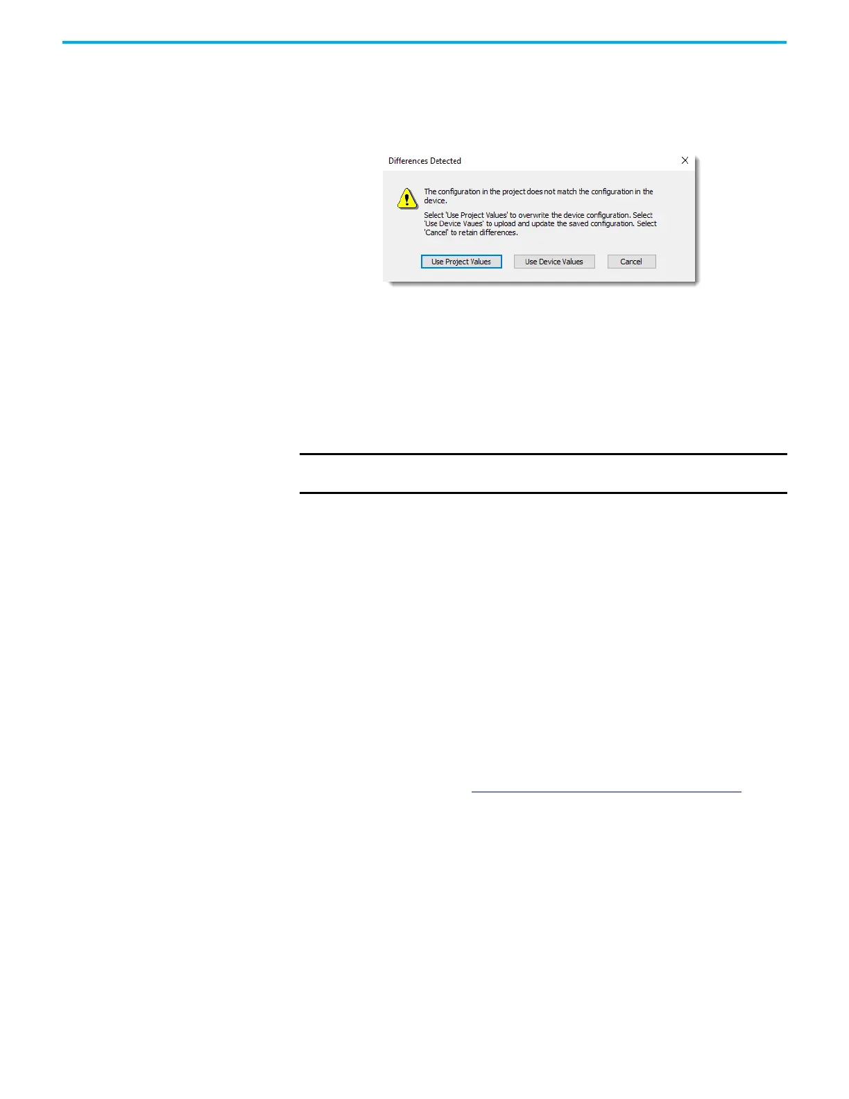 • If you select “Use Device Values”, the values of the configuration parameters replace