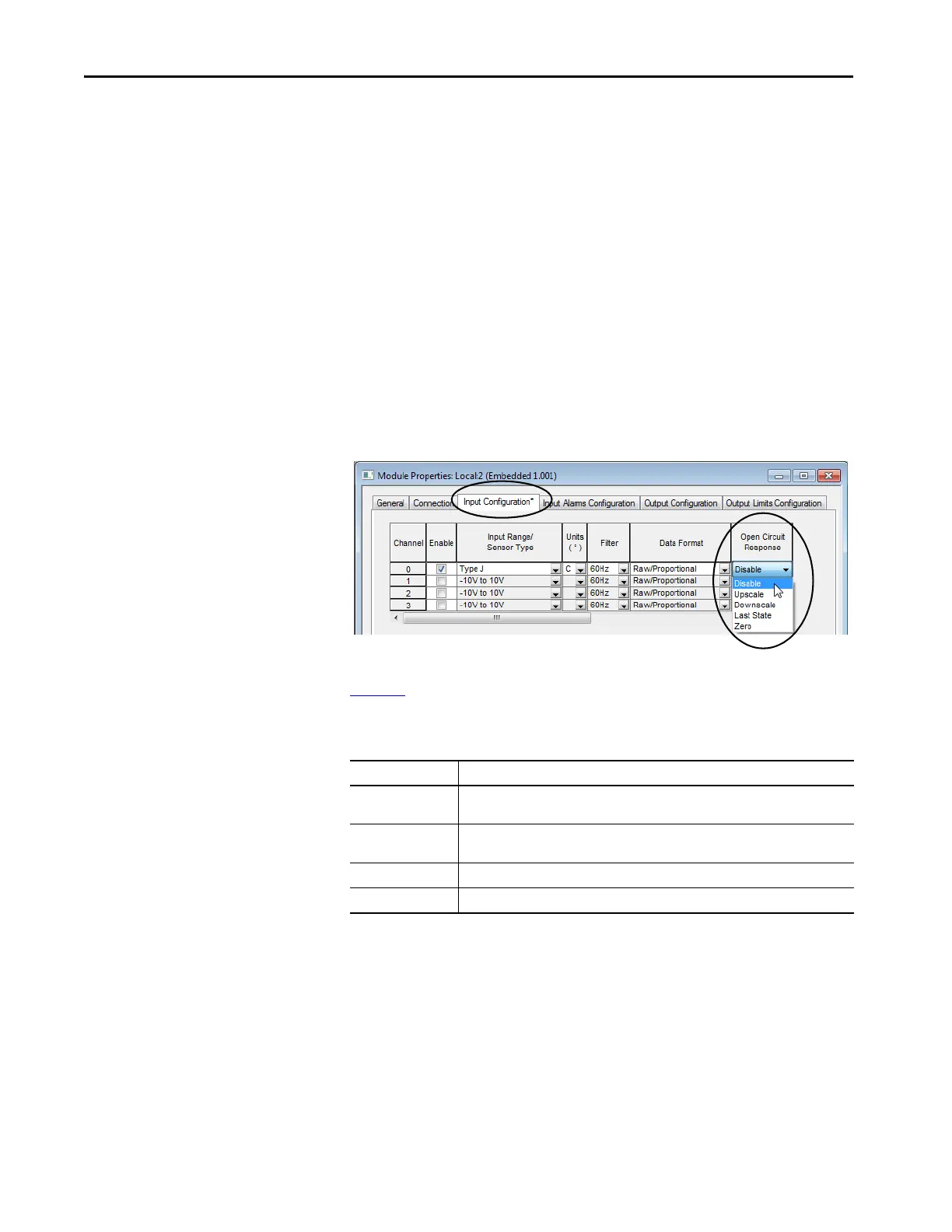 Downscale Sets the input data value to full lower-scale value of channel data word. The selected input