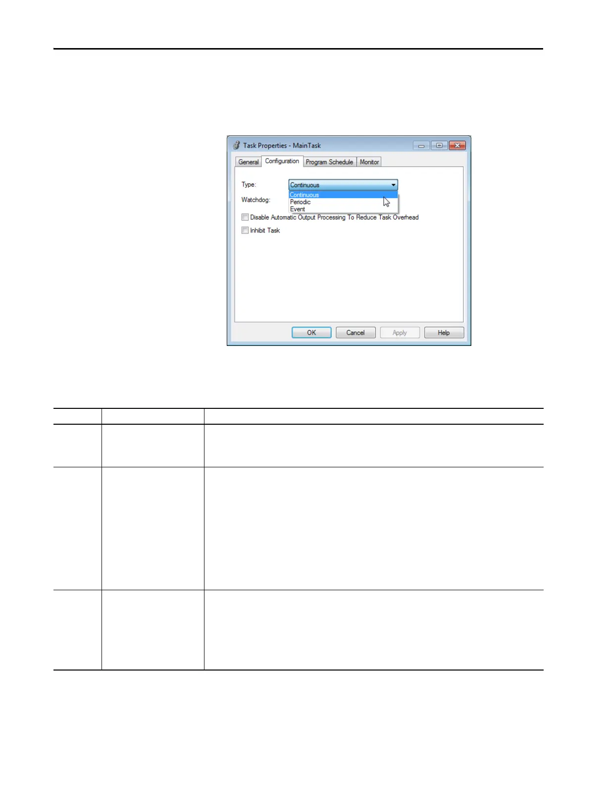 programs. Configure tasks as continuous, periodic, or event by using the Task