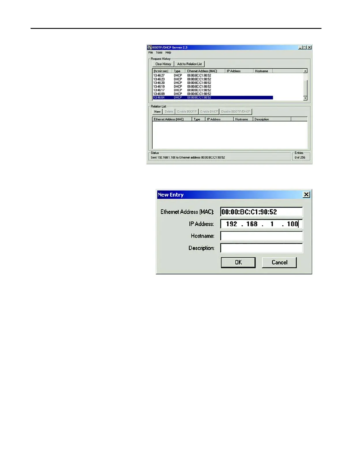 The New Entry window appears with the module's Ethernet Address (MAC).