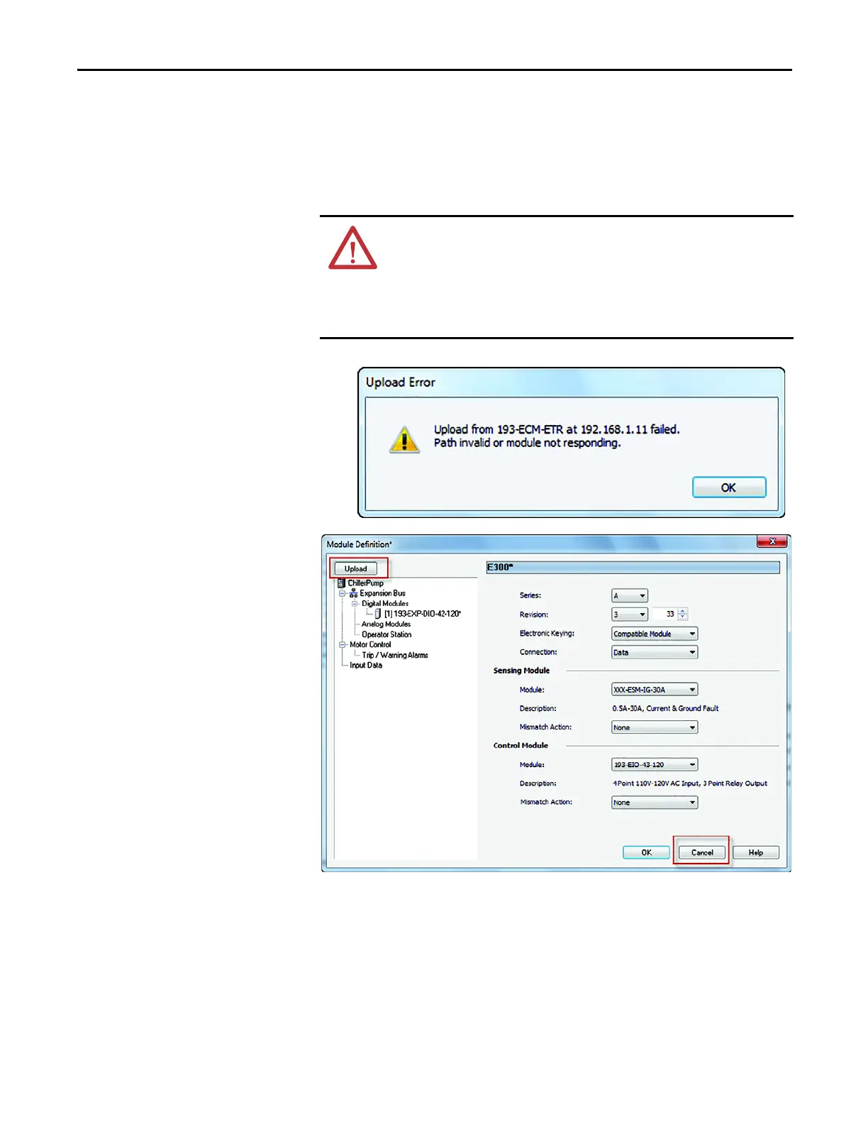E300 Electronic Overload Relay, failure to cancel the new module addition