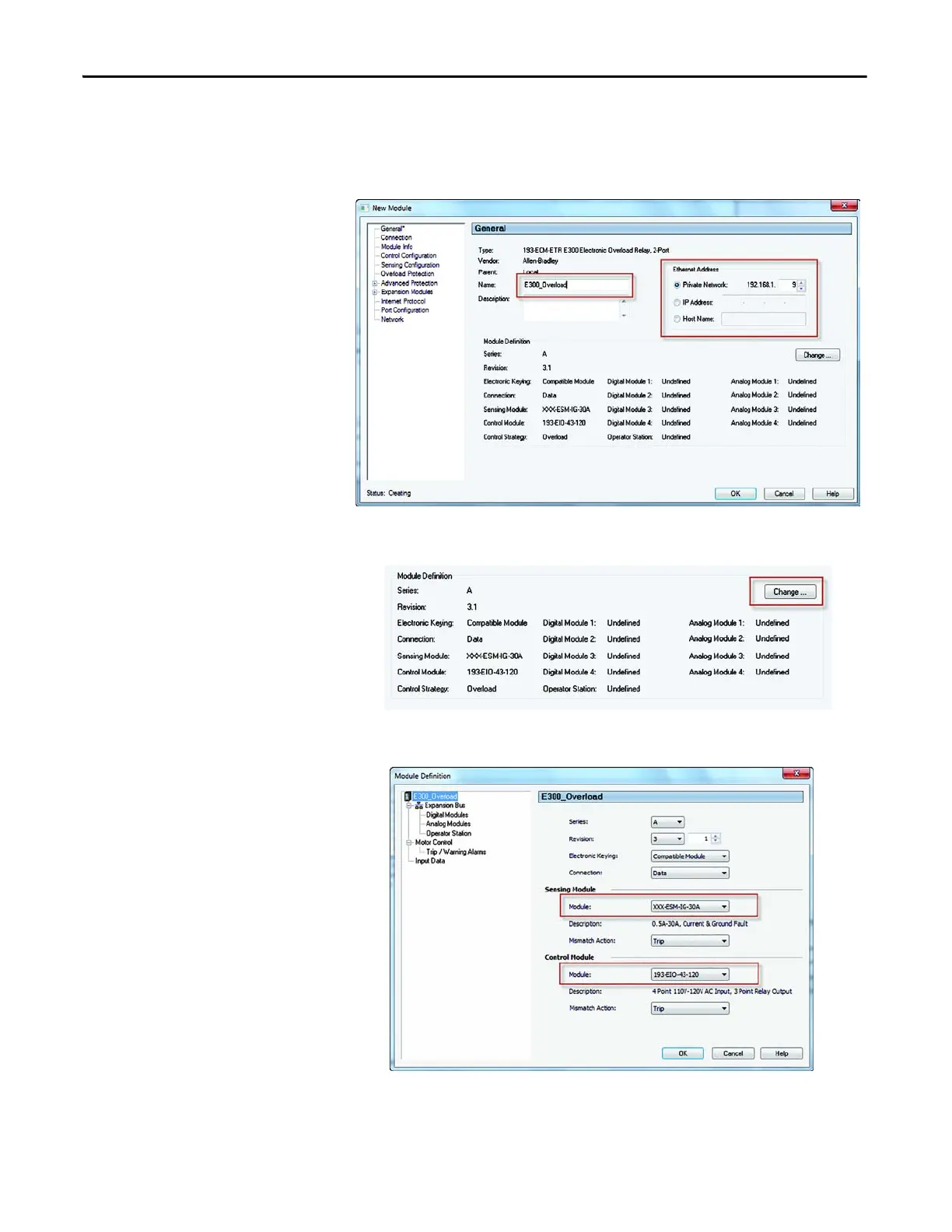 4. Enter a name and the IP address for the E300 Electronic Overload Relay
