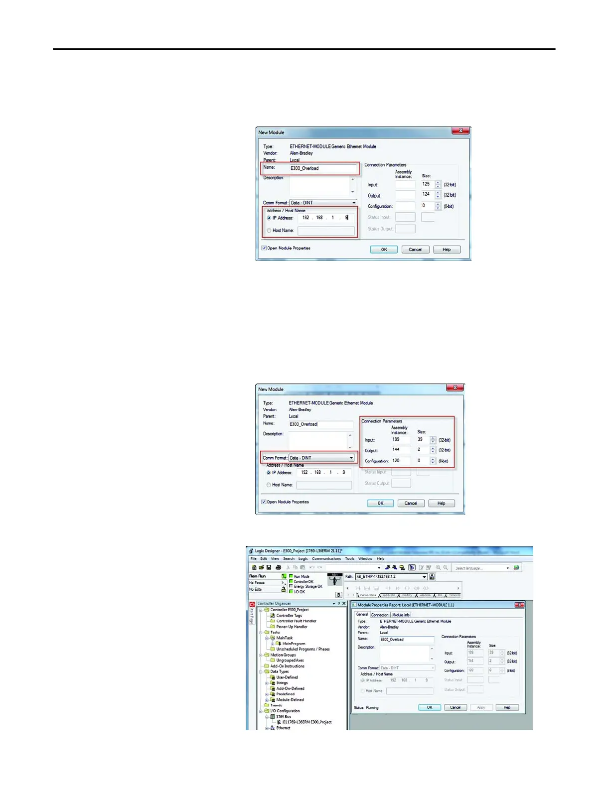 4. Enter a name and the IP address for the E300 Electronic Overload Relay