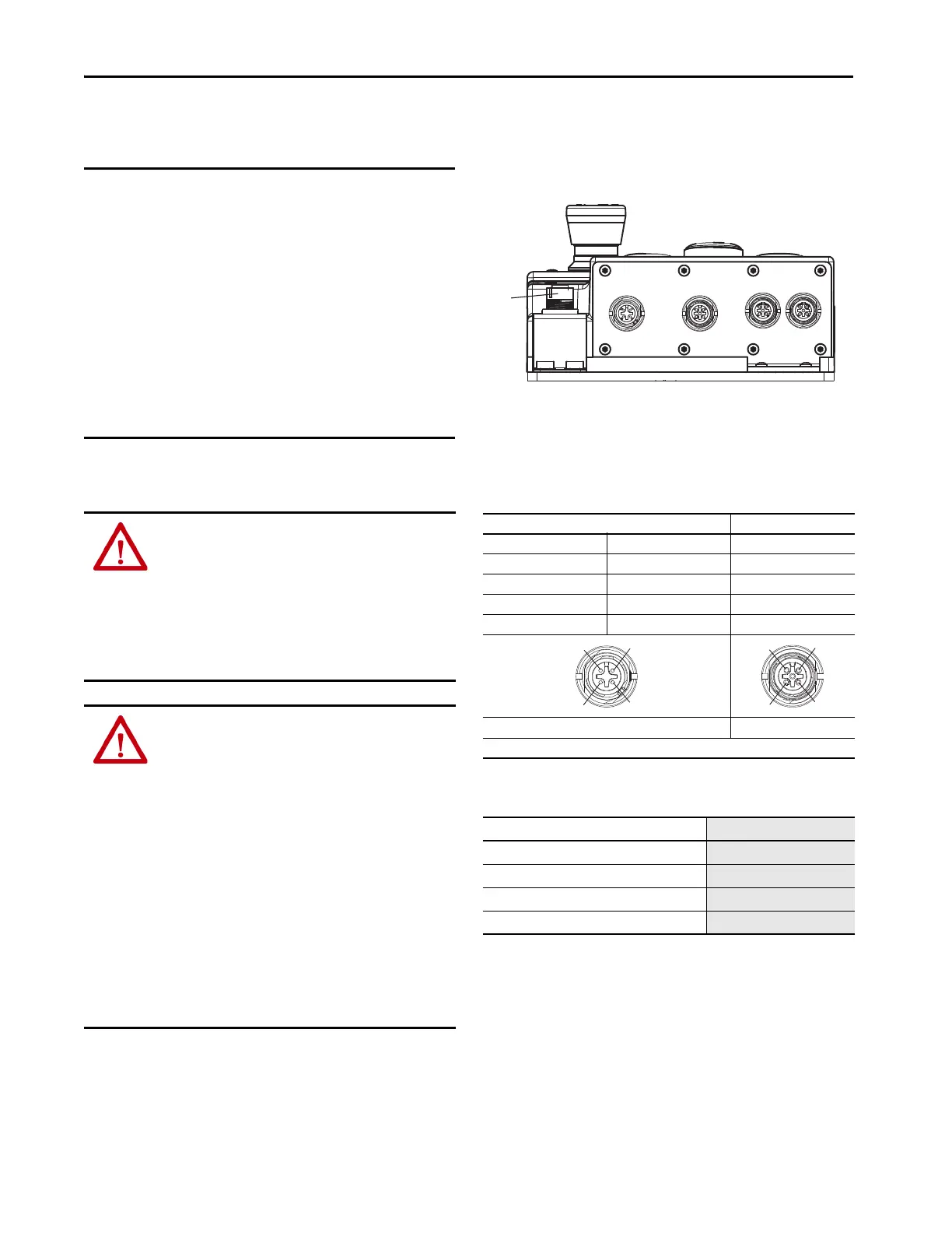 Power supply connector assignment. Connectors X1 and X2, M12 A-coded.