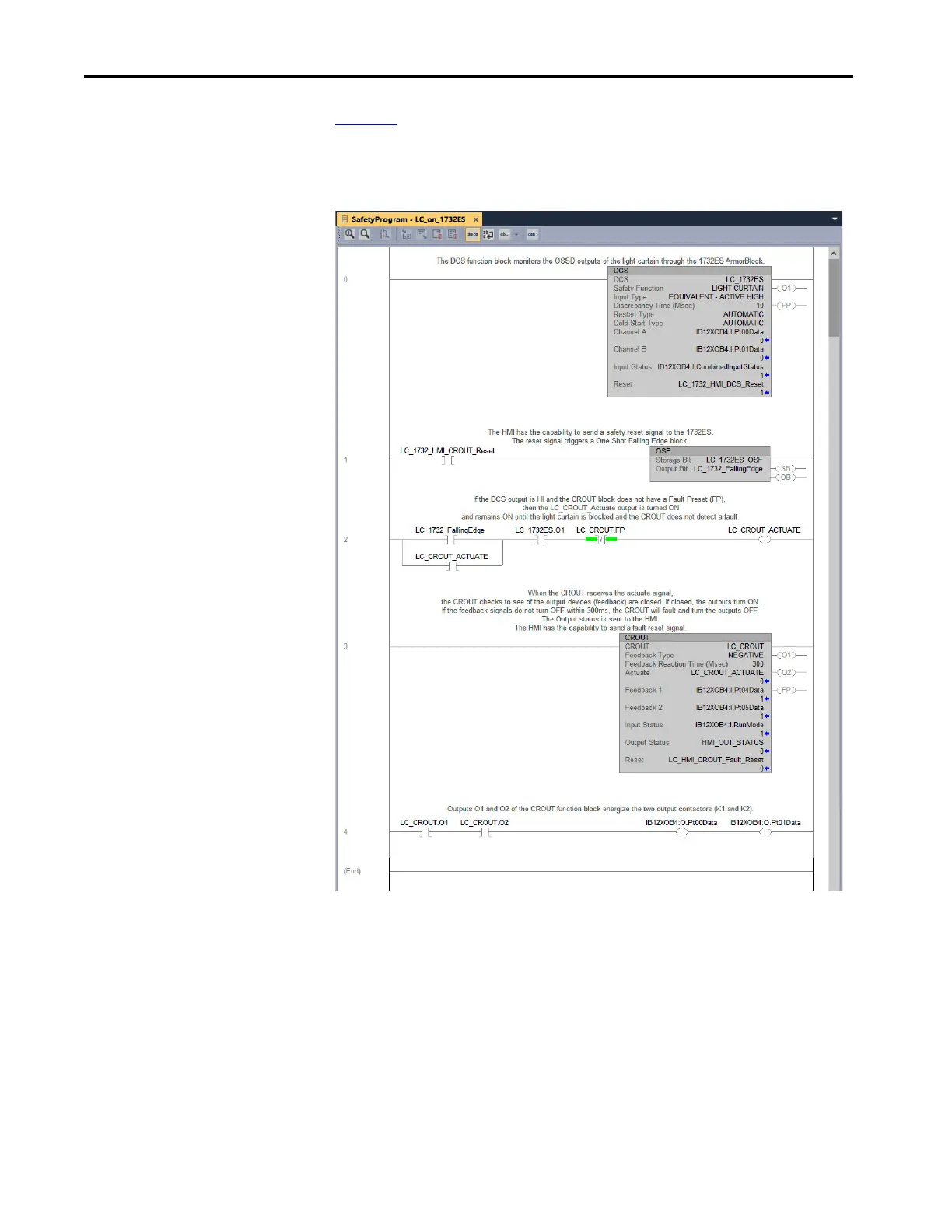 Figure 73 shows a typical example of a ladder logic program that could be used