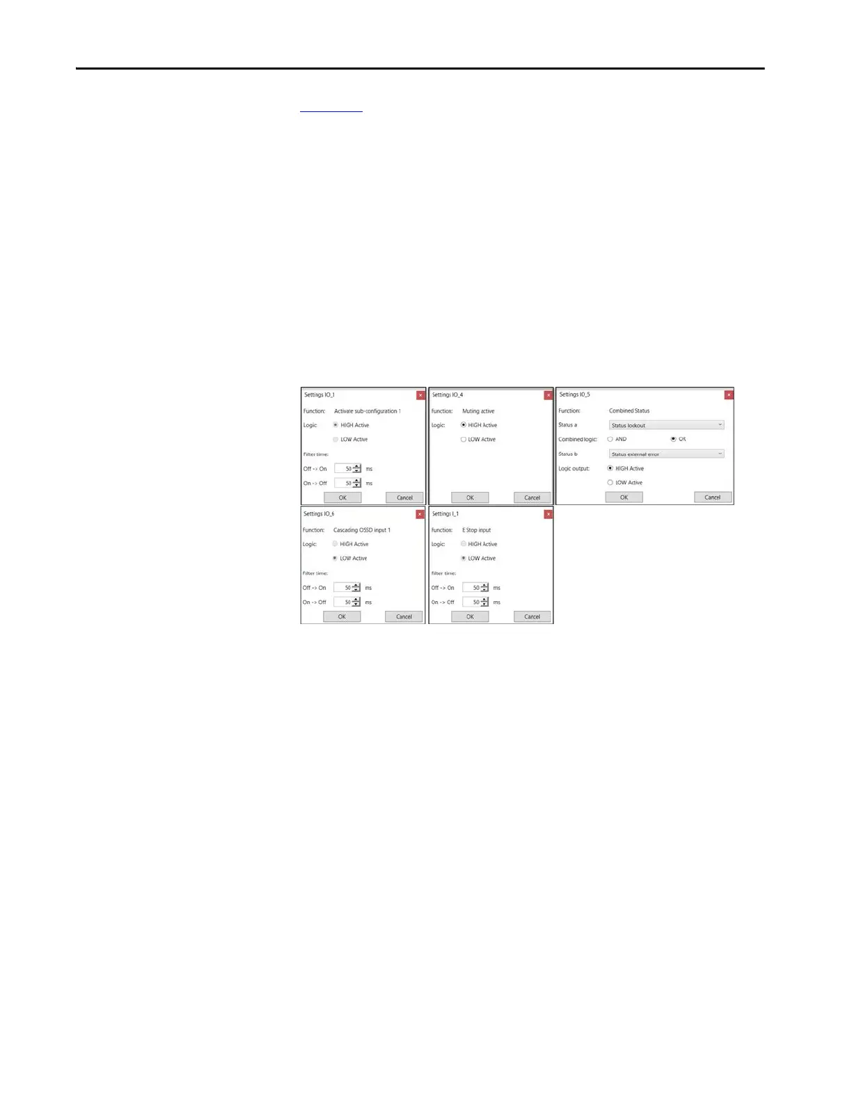 • Muting, Cascading OSSD and (Cascading) E-stop inputs have the logic