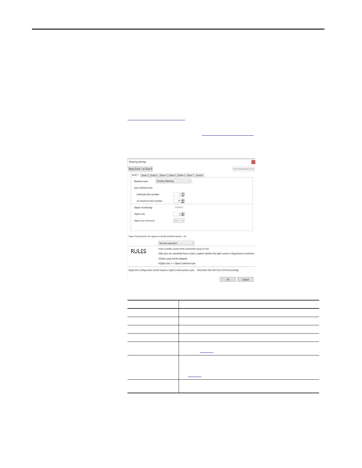 zones can be configured for floating blanking. The Teach Blanking Zones are