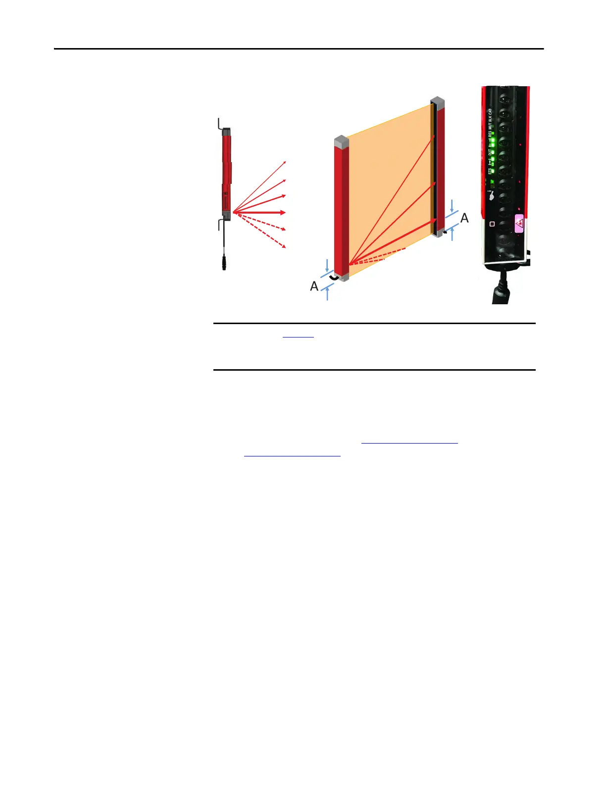 indicates additional visible laser beams (dotted) to the connection