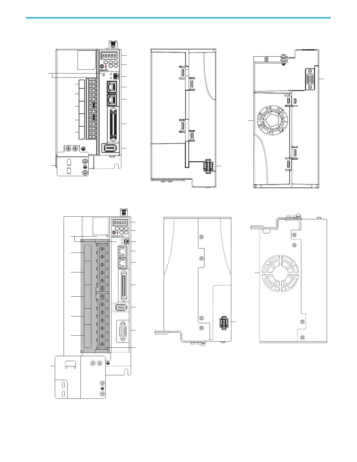 Figure 12 - Features and Indicators (catalog numbers 2198-E1020-ERS, 2198-E2030-ERS, 2198-