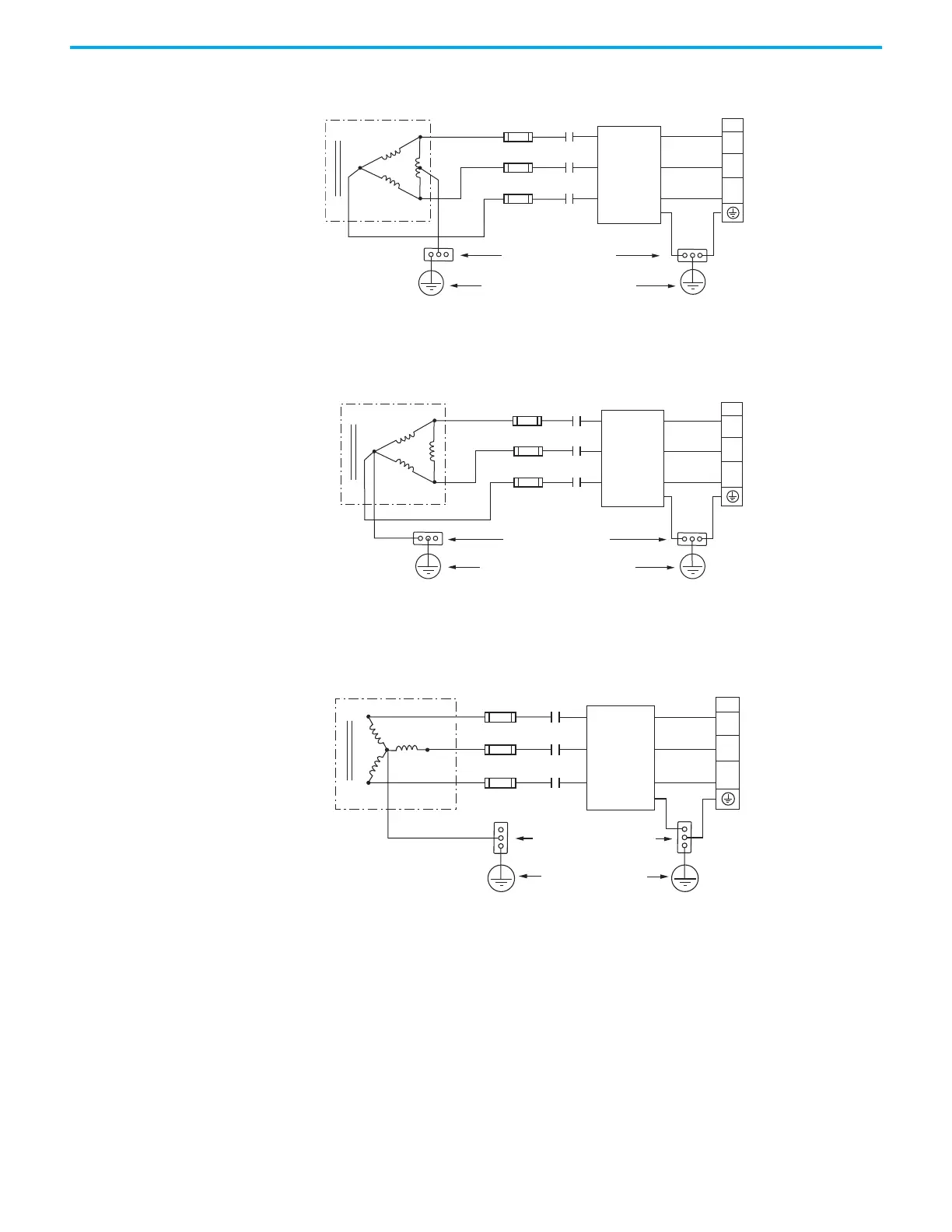 (1) Leakage current from the line filter, in this configuration, typically is higher than a balanced (center ground) configuration.