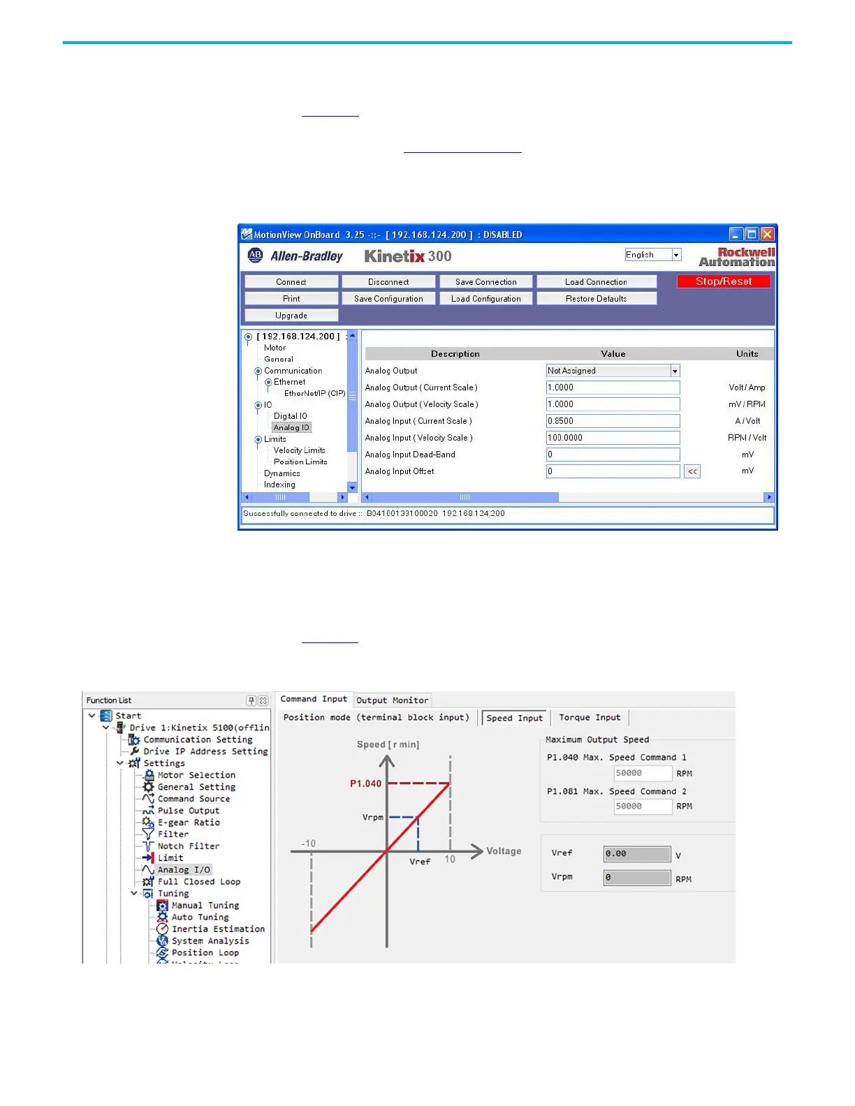 and Analog Current Input in MotionView for the Kinetix 300 servo drive. Use