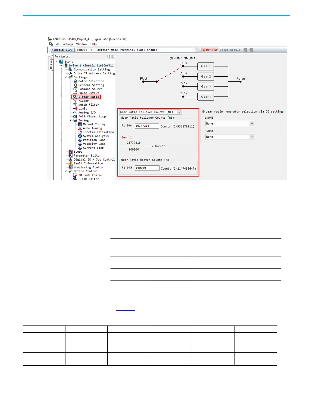Figure 43 - Gear Ratio Window in KNX5100C Software