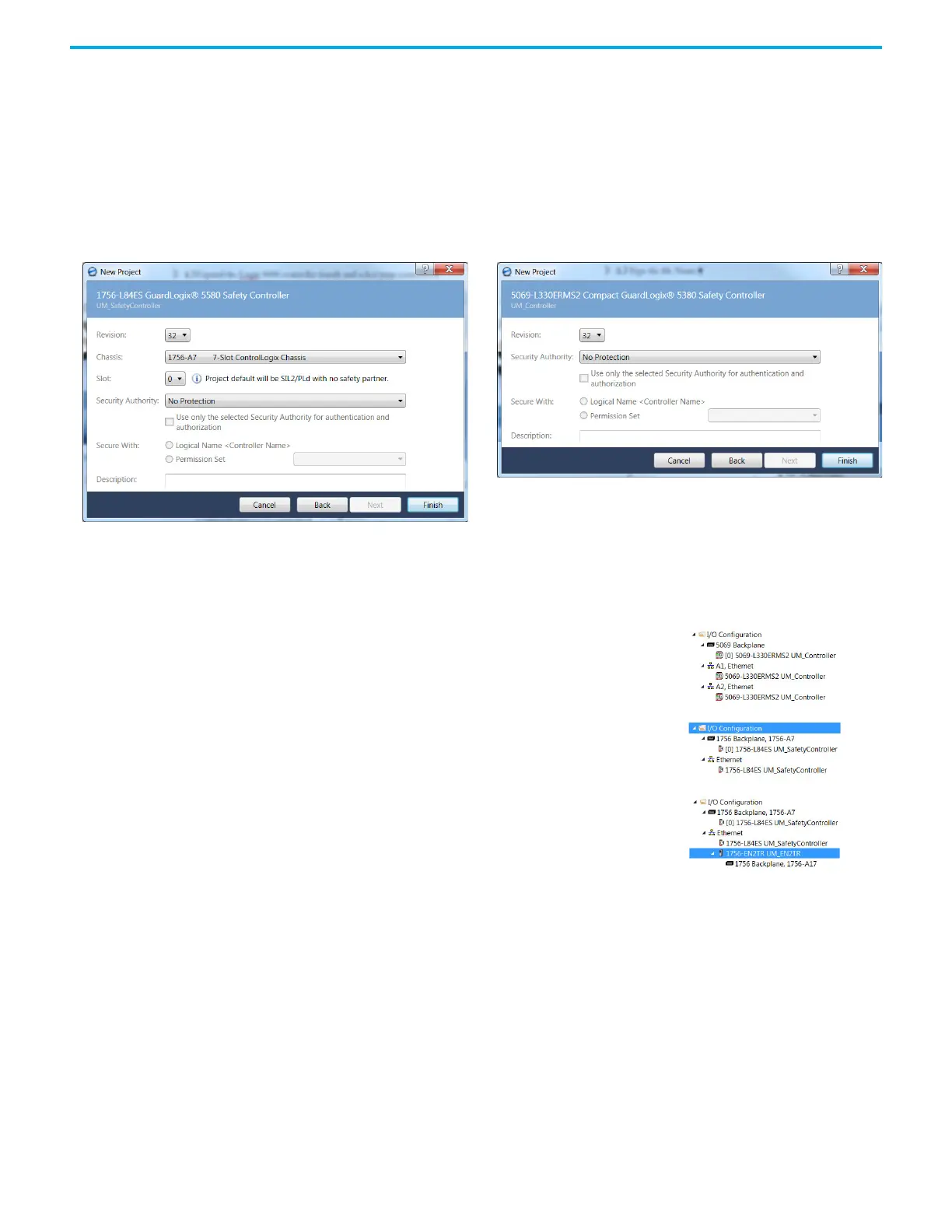 In this example, the typical dialog boxes for ControlLogix and GuardLogix