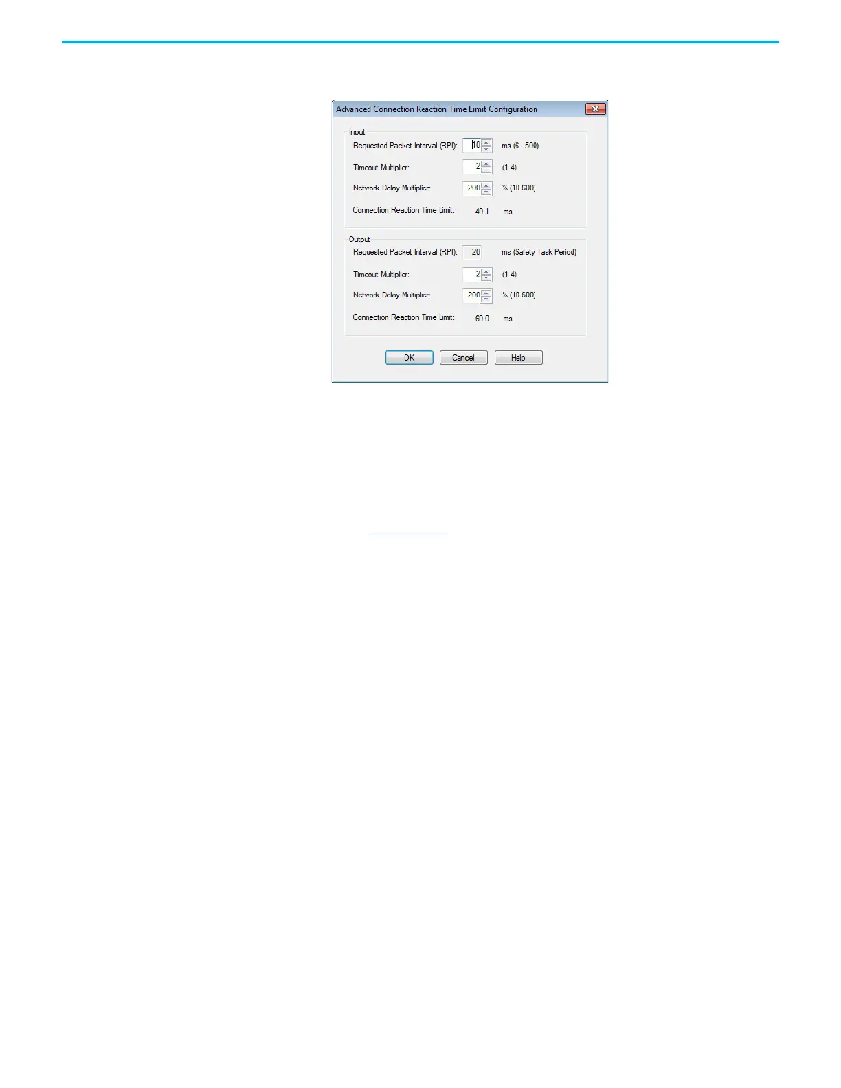 The Advanced Connection Reaction Time Limit Configuration dialog box